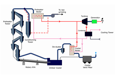 Cement kilns generate lot of waste heat which are utilized for power generation. Cementech has made feasibility reports for generating electricity from the waste heat of Kiln of Messebo Cement Factory, Ethiopia. Generation of power from waste gases in Cement Plants is gaining popularity around the world. The reduced generation cost results in huge financial savings to the Cement Company.